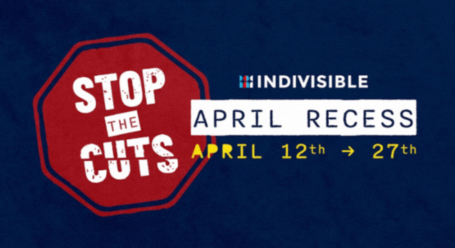From April 12-27, Indivisible groups nationwide are hosting in-district events to make Republicans sweat and make sure Democrats stand firm. Please click here to sign up for a “Stop The Cuts” April Recess event near you.