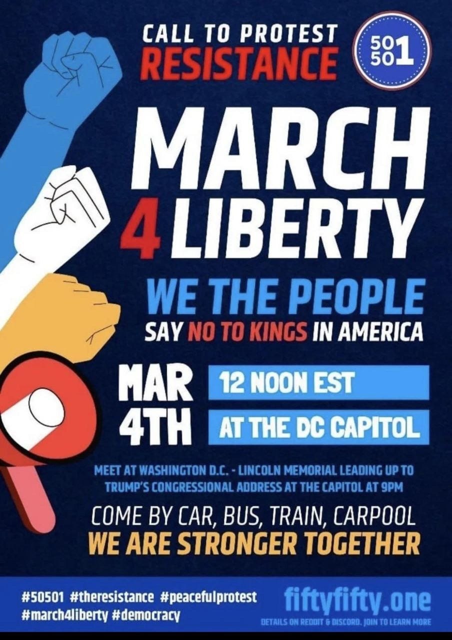 What happened: Thousands of protesters gathered in cities across the United States to demonstrate against recent actions by the Trump administration and Elon Musk's Department of Government Efficiency (DOGE). Protesters targeted Tesla stores, federal buildings, and other symbolic locations to voice opposition to government cuts, immigration policies, and Musk's role in slashing federal jobs and programs. The protests were part of a coordinated nationwide movement using hashtags like #50501 and #TeslaTakedown.